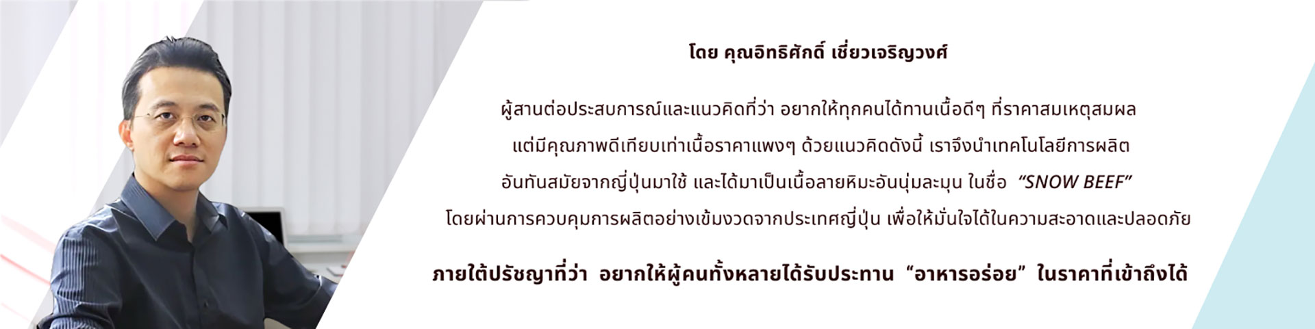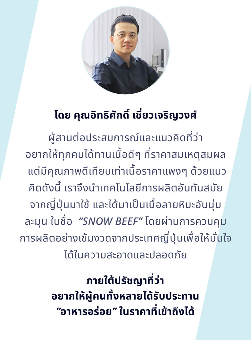 ในศาสตร์แห่งการแปรรูปเนื้อสัตว์ และได้พัฒนาเทคโนโลยีอันล้ำหน้า ในการผลิตเนื้อวัวลายหิมะ
